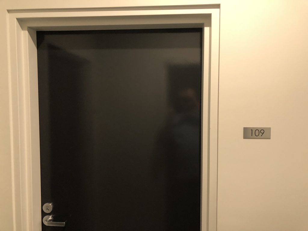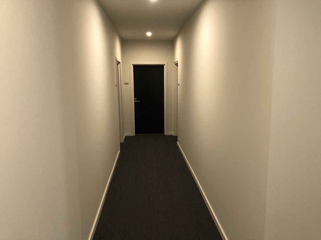 At the end of the hallway turn left and walk towards the front door of unit 109 located on the right hand side.