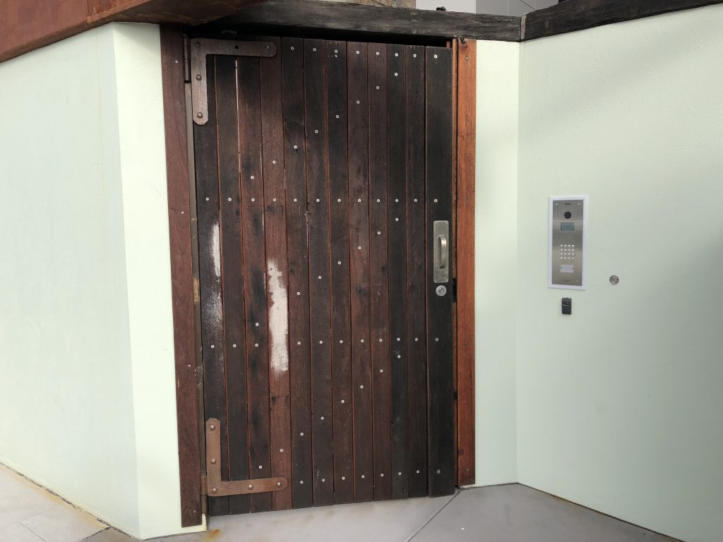 Then pull the large wooden door open.